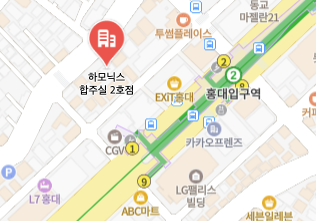 홍대입구역 1번출구에서 2~3분
